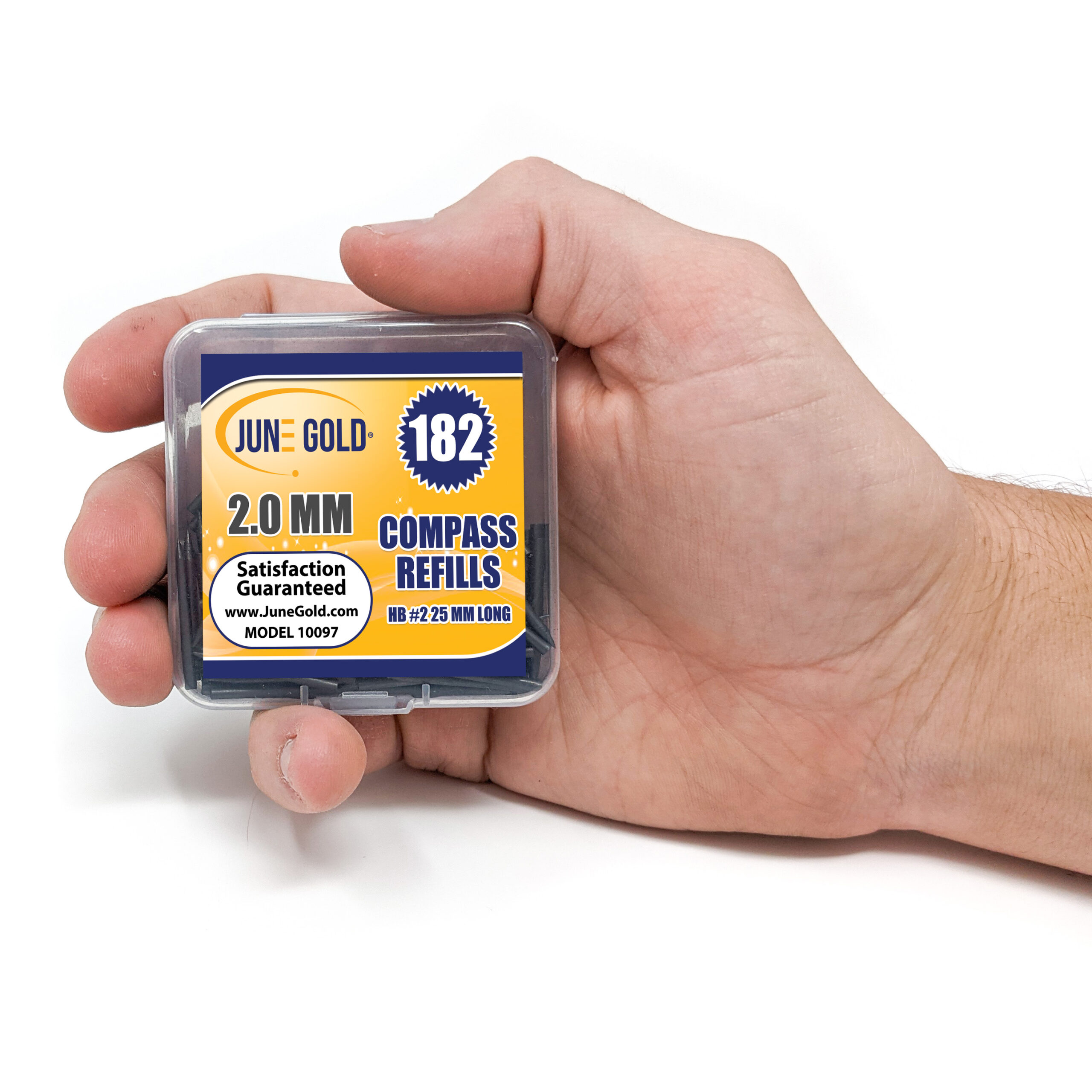 INCLUDED: 182 compass graphite lead refills that have a 2.0 mm diameter, #2 / HB hardness, and 25 mm in height.